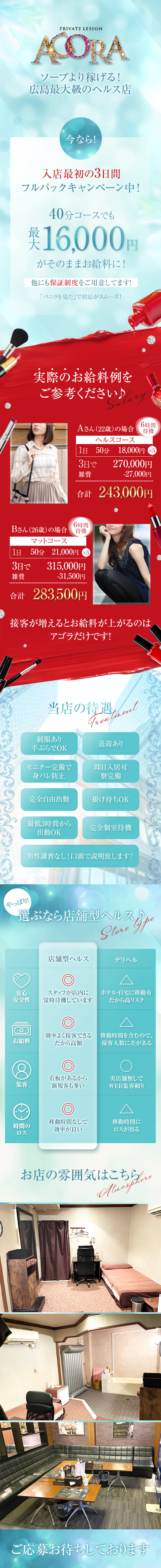 スタッフ求人|広島市中区薬研堀|ヘルス|AGORA(アゴラ)早朝6:00オープン!!厳選美人OLが連日多数出勤!!